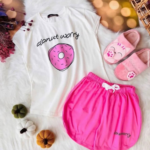 ست تیشرت شلوارک زنانه مدل دونات