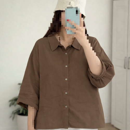 شومیز زنانه آستین سه ربع لینن نخی حصیری