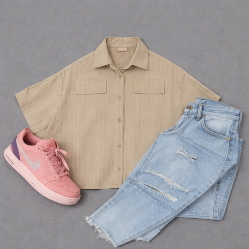 شومیز باکسی آستین دکمه لینن کوک دوزی