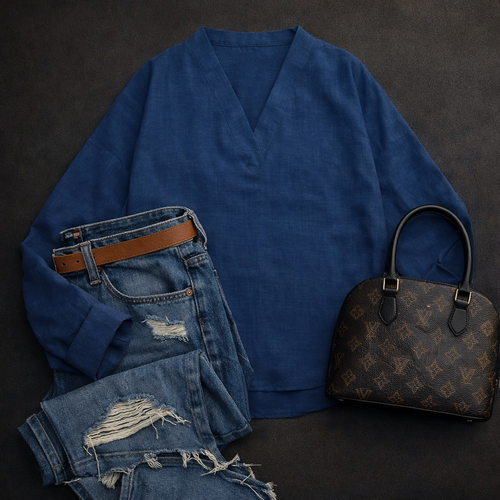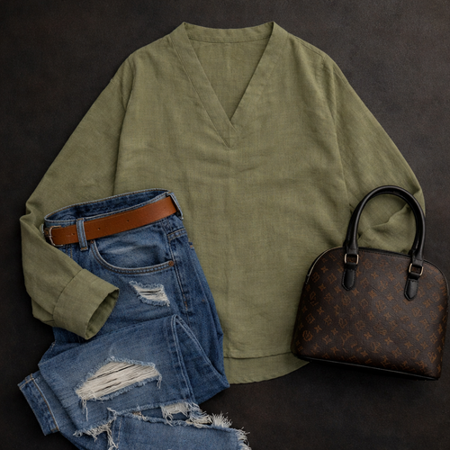 شومیز زنانه لینن یقه هفتی فری سایز 36 تا46