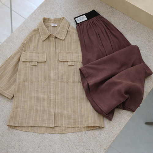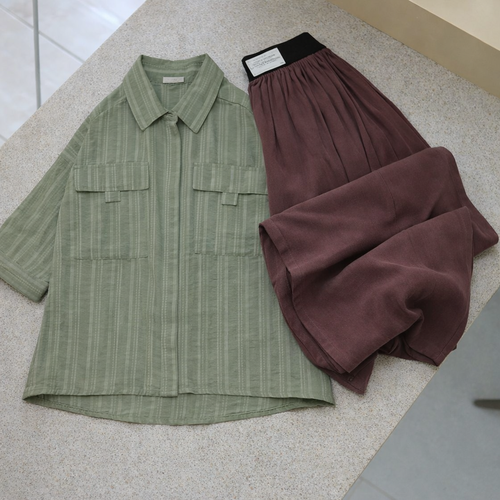 شومیز زنانه لینن نخی جیب جلو فری سایز