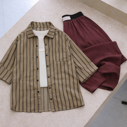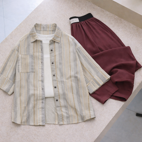 شومیز زنانه لینن نخی راه راه دکمه دار
